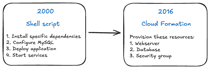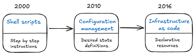 This shift from imperative to declarative approaches fundamentally changed how infrastructure teams operated. Let's look at what this evolution meant in practice.