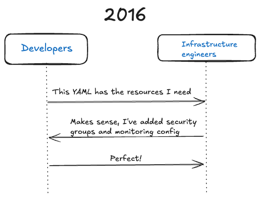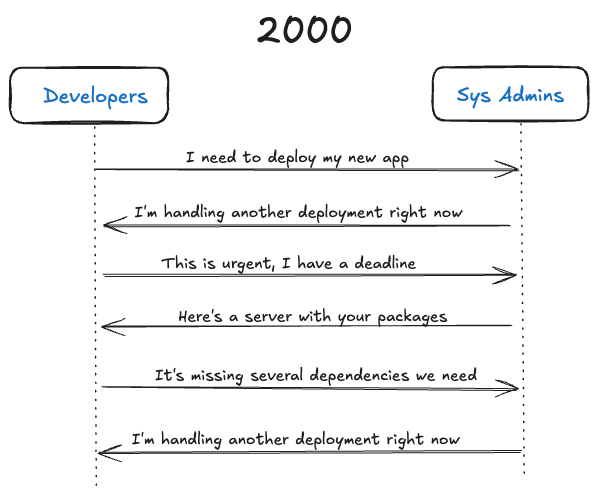 In the early days, deploying infrastructure involved a lot of back-and-forth between developers and system administrators: