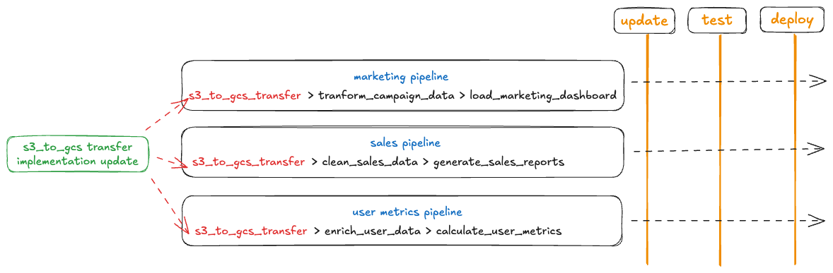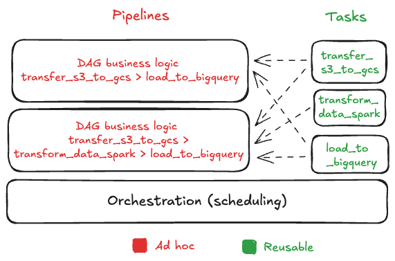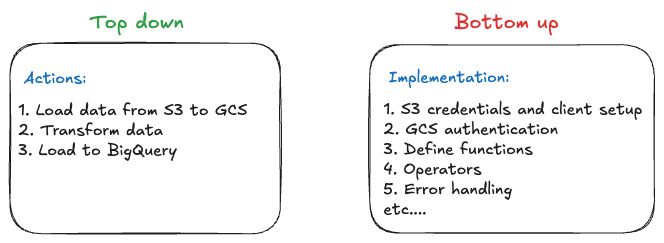 Data teams today face similar challenges to what infrastructure teams encountered in the 2000s. To understand these parallels, let's examine how data pipelines are typically built, using a common scenario: moving data from S3 to GCS, then loading it into BigQuery - a pattern you might use when you have transactional database backups in S3 but your analytics stack runs on BigQuery.