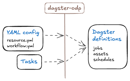 These components are converted by dagster-odp into Dagster constructs like assets, jobs and schedules.